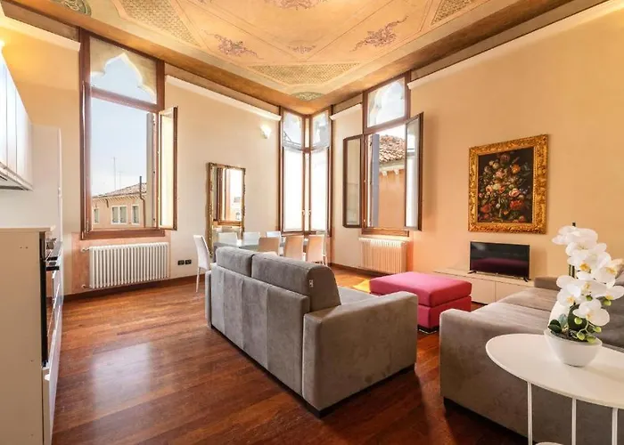 The apartment is situated in the Castello district, within a 5-minute drive of the enclosed Bridge of Sighs and only steps away from the byzantine shipyard "Venetian Arsenal". This 8-room apartment is only 1.4 km from the Museum of Music.